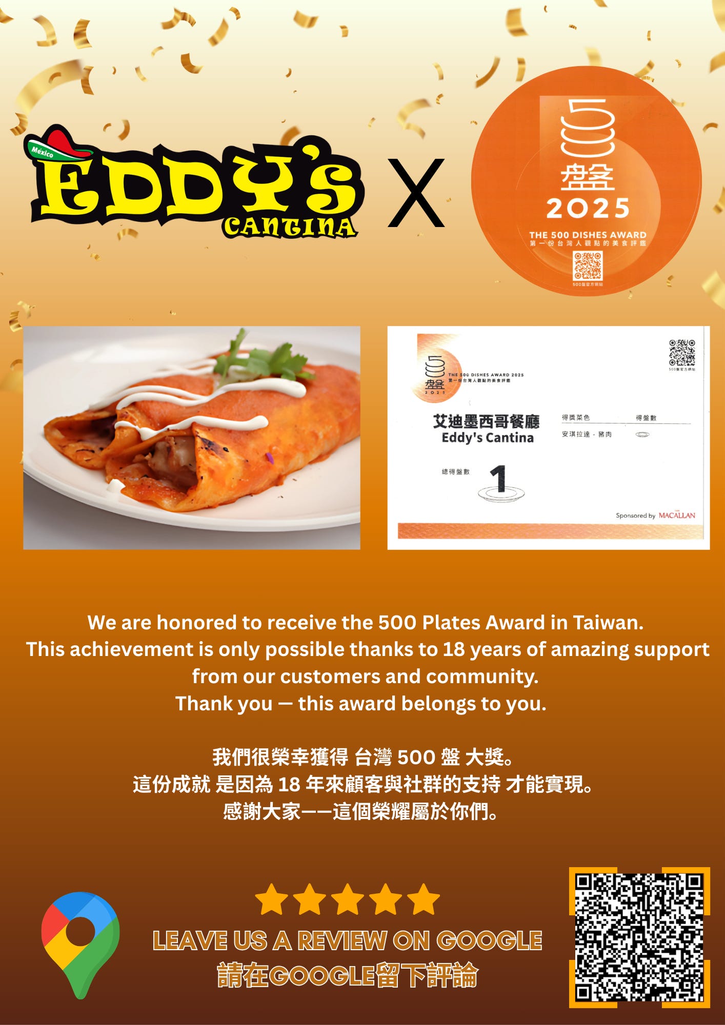 ❤️ 如果你喜歡艾迪墨西哥餐廳,請幫我們一個小忙!