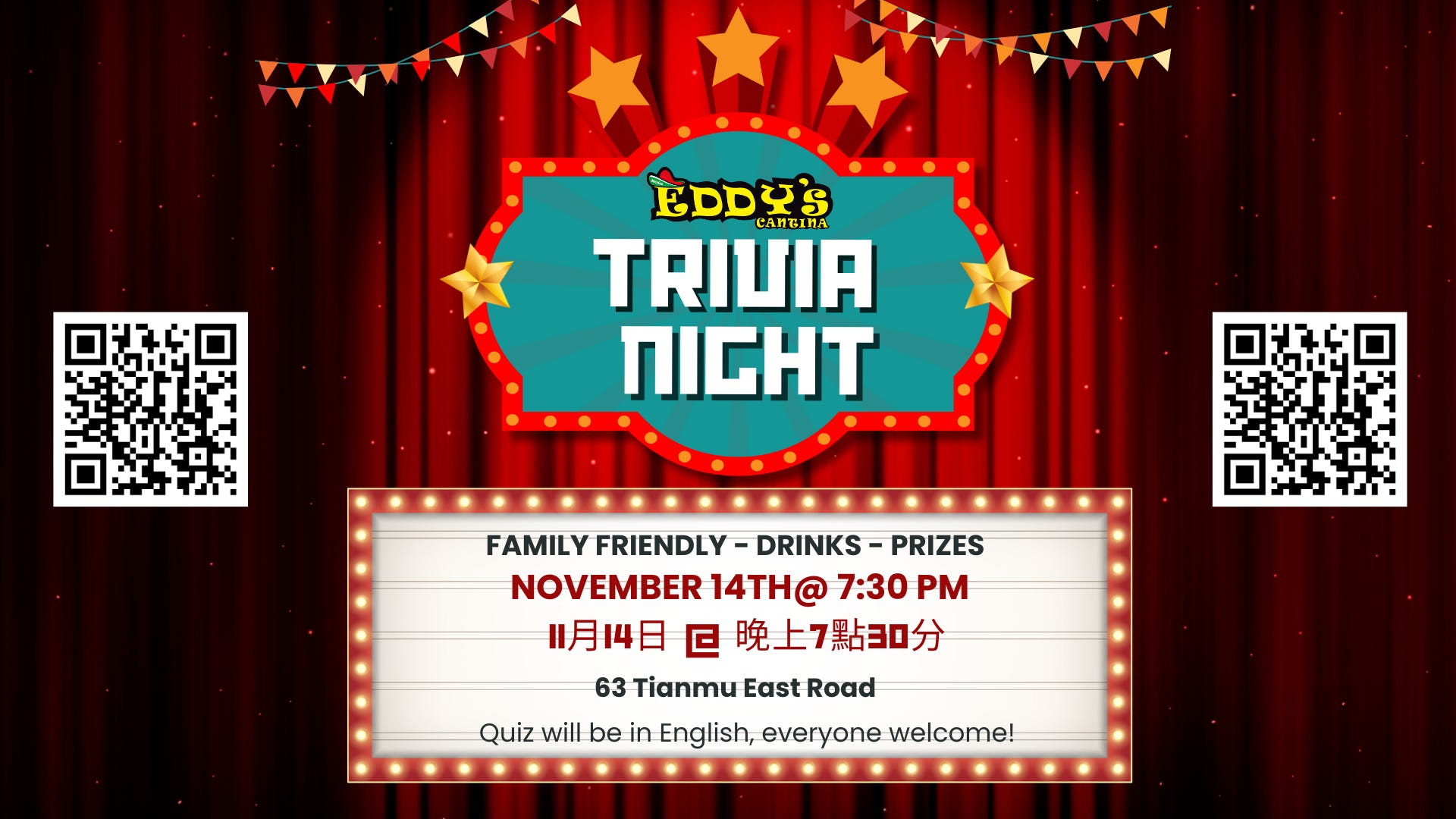 November is HOT at Eddy’s Cantina! This month we’ve got UFC 322 live on the screens, our packed Trivia Night, and an exclusive Corona XL VIP deal—plenty of reasons to come hang out in Tianmu. Scroll down, save the dates, and book your table.