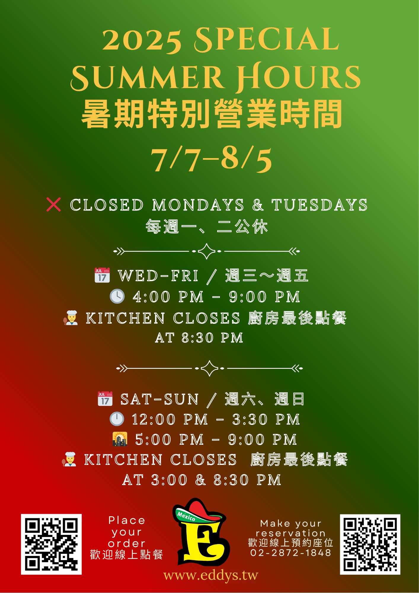 夏天來啦~Eddy’s Cantina 為你準備了冰涼飲品、趣味猜謎活動!☀️🌮