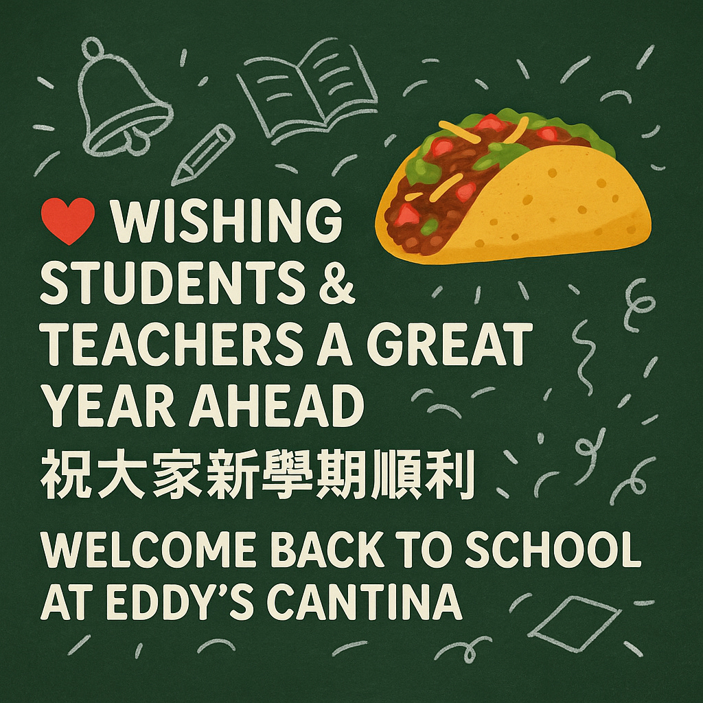 新學期代表新的挑戰、新的冒險,也有更多理由來 Eddy’s 聚一聚!我們在這裡祝福所有的學生、老師和家庭都能有個美好的開始,也期待大家快來 Cantina 一起吃飯聊聊!